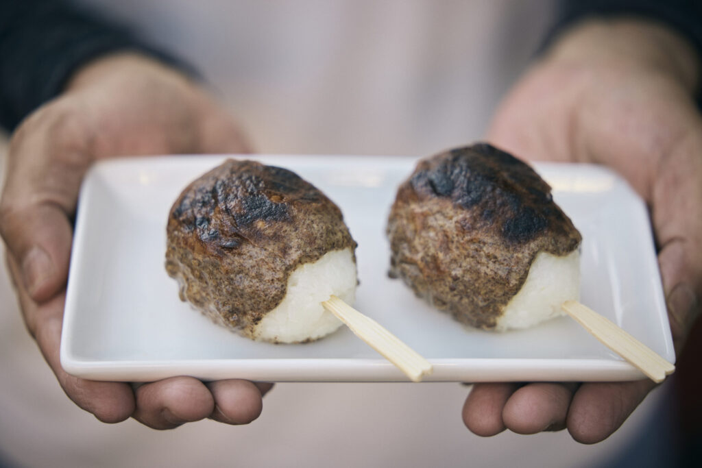 その正体は、うるち米に、地元で栽培されたエゴマをすりつぶしたじゅうねん味噌を塗って焼き上げたものだという。